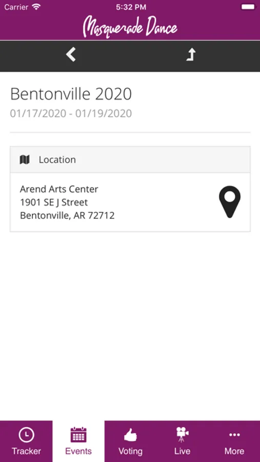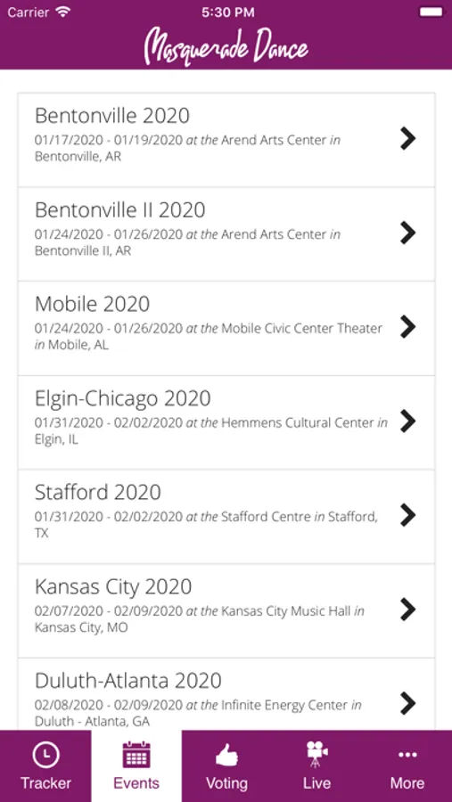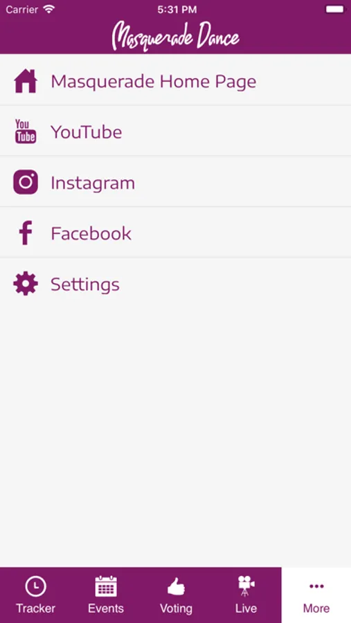 · Instagram and Facebook feeds, as well as access to the Masquerade Dance Website.