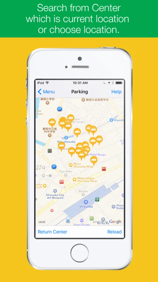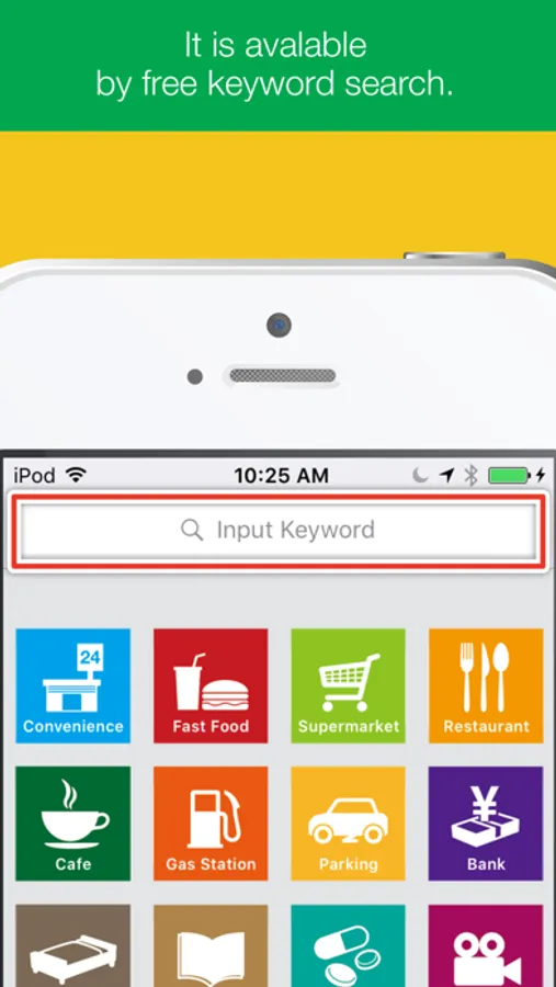 "Search Landmark" searches Landmarks or Shops around your place as center and shows their place on Map.