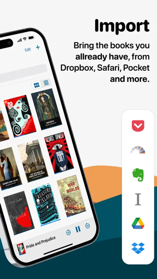 - Native support for Dropbox, Google Drive, iCloud Drive, Pocket, Instapaper and Evernote.