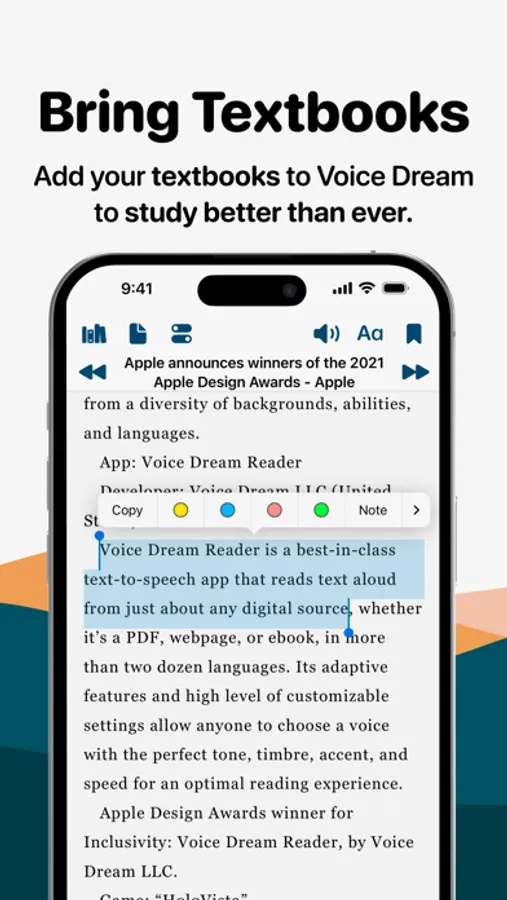 Apple Design Award Winner! Voice Dream - Read Aloud lets you listen to PDFs, textbooks, Web pages, emails, and books using advanced AI Text To Speech!