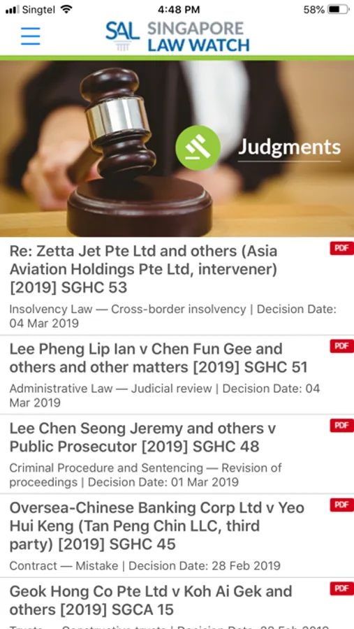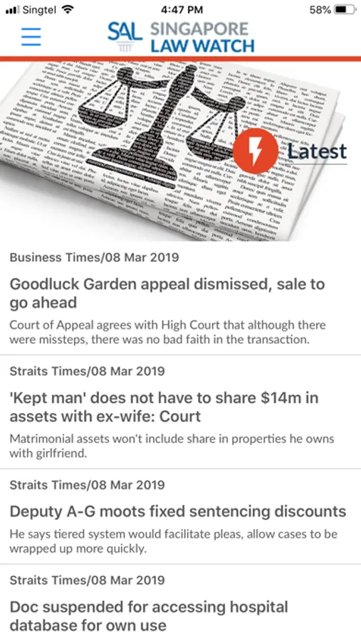 The SLW mobile app is a free daily legal news service for the law community in Singapore and abroad. Curated from over 40 sources, you have access to a wealth of information at your fingertips including the latest legal headline news, judgments and decisions, law firm commentaries, legislation, notices and directions and an exhaustive list of events and seminars.