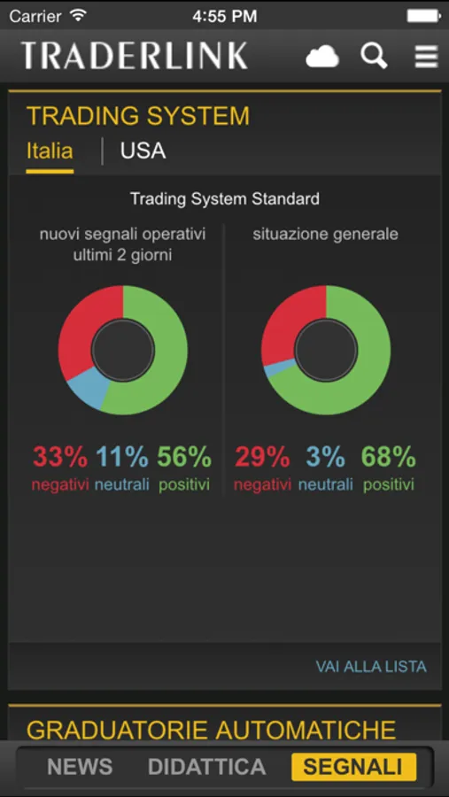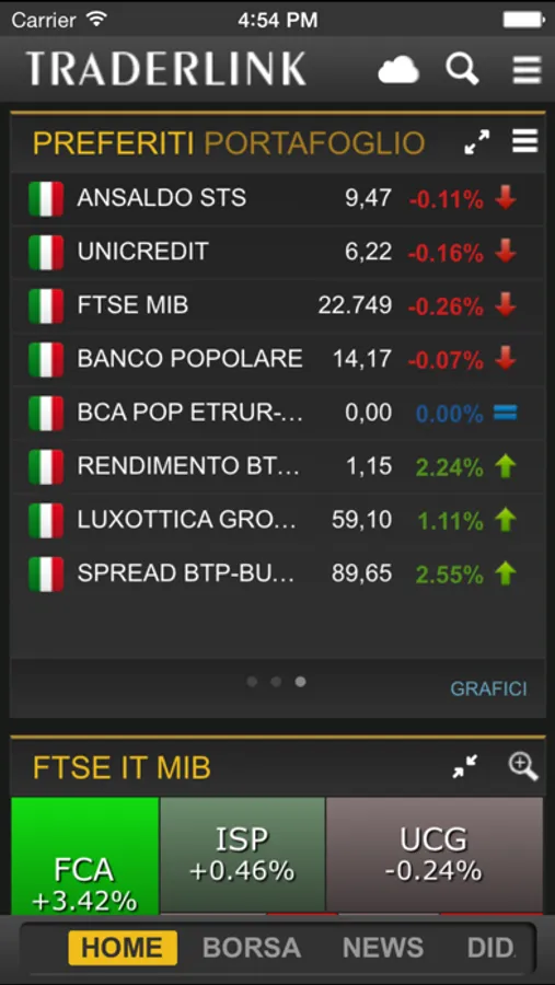 Liste e portafoglio, per controllare anche graficamente l'andamento dei titoli preferiti. Imposta i tuoi allarmi sui prezzi, notifiche via email e push. Leggi le news, i report ed i segnali di trading sui tuoi preferiti.