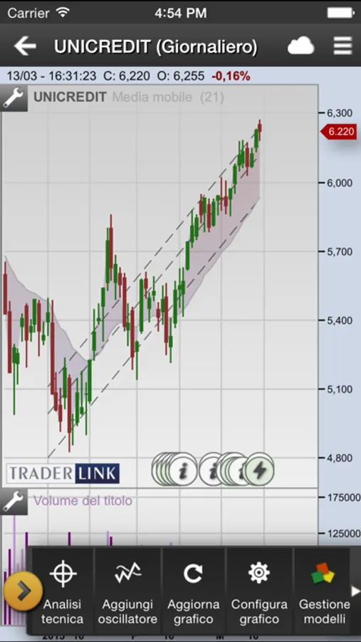 Traderlink Chart si interfaccia con "TouchTrader", l'App esclusiva di Directa, per trasformare l'iPhone e l'iPad in un'efficace piattaforma di negoziazione, in grado di connettersi ai mercati finanziari e scambiare dati ad alta velocità con i server delle quotazioni e del trading Directa.