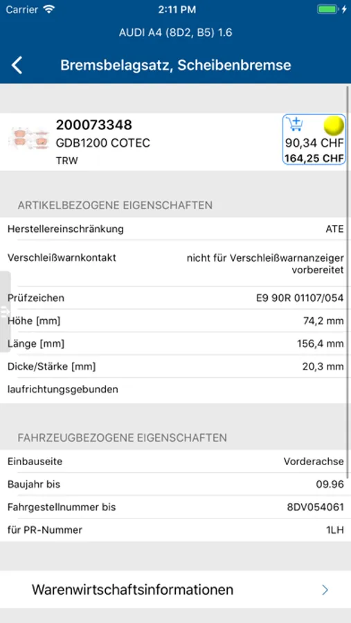 Zu jedem Artikel werden in der App alle relevanten Informationen wie zum Beispiel technische Eigenschaften oder Produktabbildungen angezeigt. Die Anwendung eignet sich für den Einsatz in Werkstatt, Handel und Industrie.