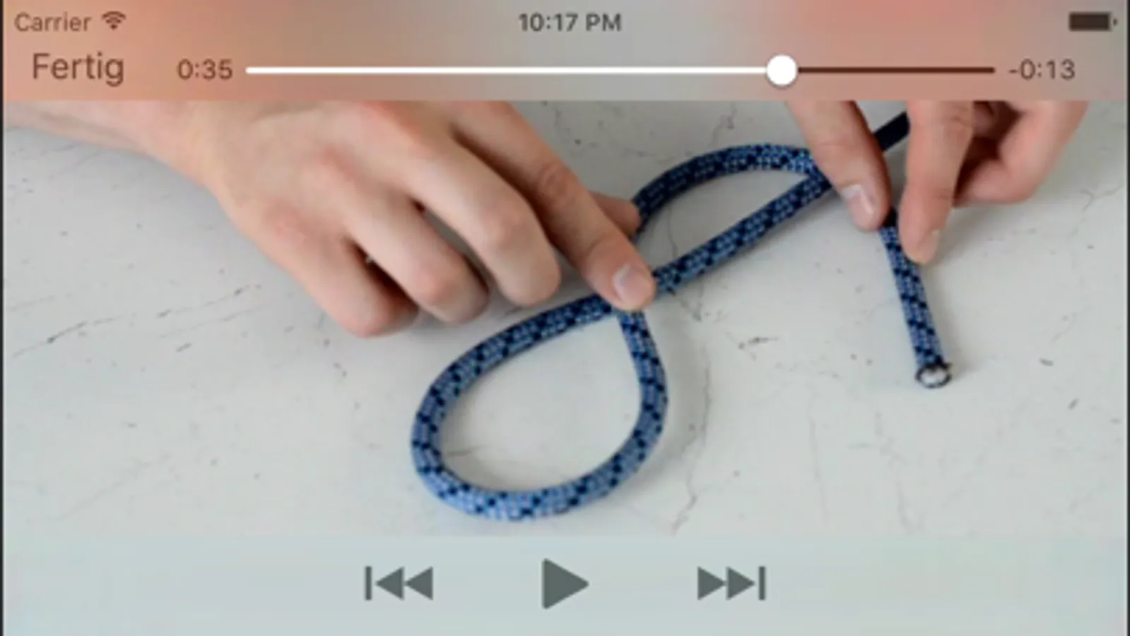 Der Knoten Video Trainer zeigt dir mit Hilfe von Videos das Knoten verschiedener Outdoor-, Kletter- und Segelknoten.