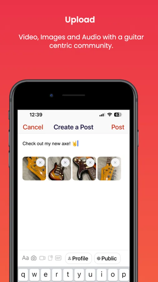 • Record Video: Capture your moments in high-definition. Post video clips or link your YouTube videos to showcase your guitar skills and gear.