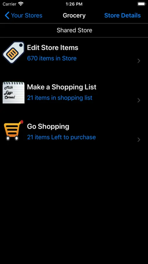 AccuShop is a simple yet very powerful shopping list assistant. No pictures or prices or coupons or features that just get in the way of shopping. This is an app that allows you to make your shopping list fast and easy. You setup a store, usually grocery store, but it can be any type of store. You provide the list of items you typically purchase, and indicate their category (eg. Dairy, meat, etc.), the Aisle they appear in the store, and where they can be found in your home.