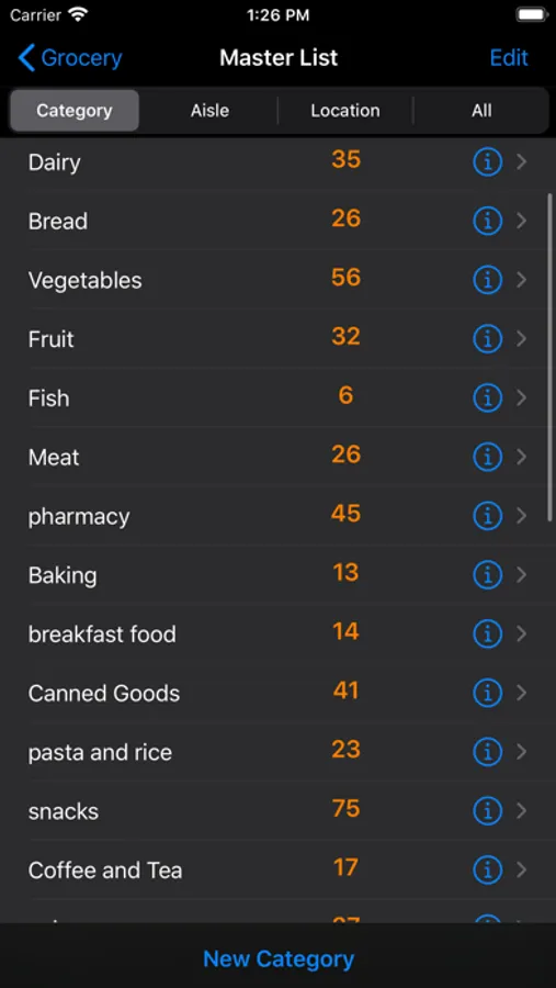 Category: Up to you how to categorize the items. Make as many or as few as you like. Whatever you need to help organize your shopping needs. You can change them around at anytime - rename them, move items back and forth until you get it just right.