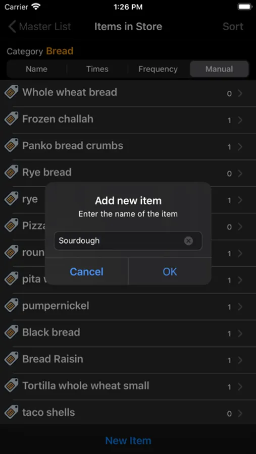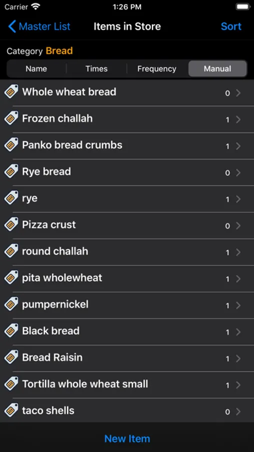Aisle: Where the item is located in the store. Could be a number (like 3) or a name like "Bread" or "Fish". It can be anything that helps you locate the item. You can sort the Aisles by the order you go through the store.