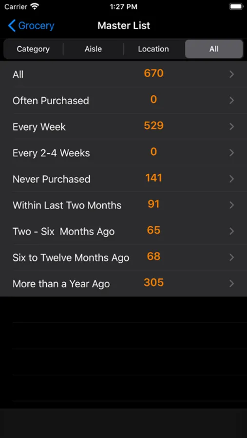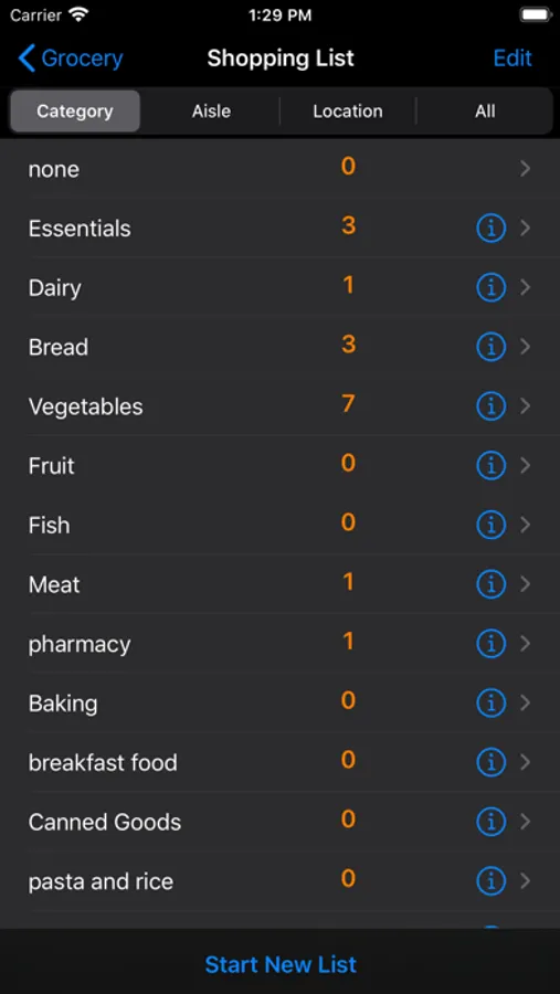 In the app, you can view your list organized by Aisle for easy shopping, by Category or Location for easy "List making". Switching between views is instantaneous.
