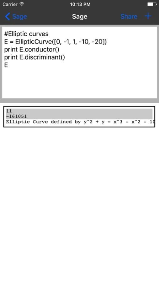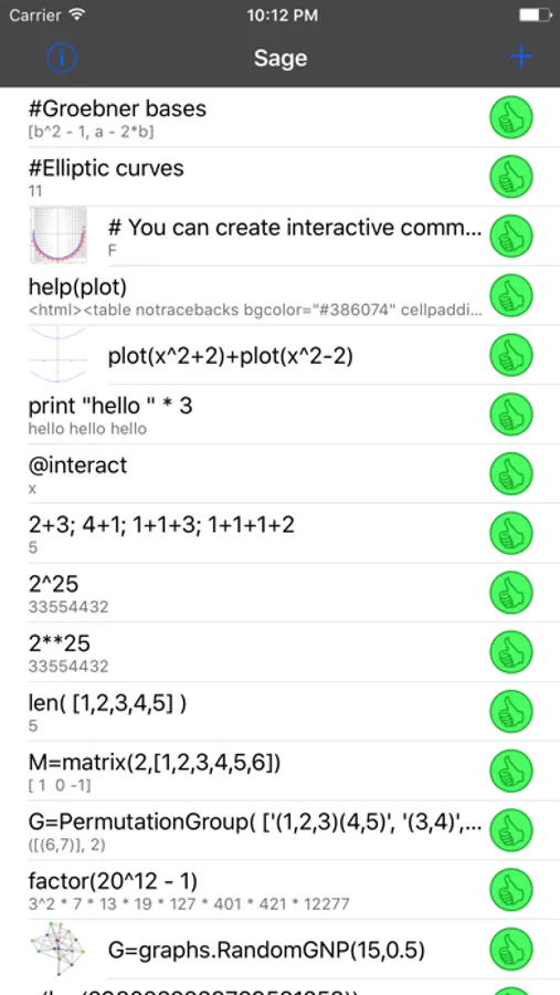 This is a lightweight alternative to the Sage online notebook. It is optimized for quick calculations. Network connectivity is required to perform calculations, but results are stored on the device for offline perusal and can be easily emailed to colleagues. Several buttons are added to the keyboard to simplify input.
