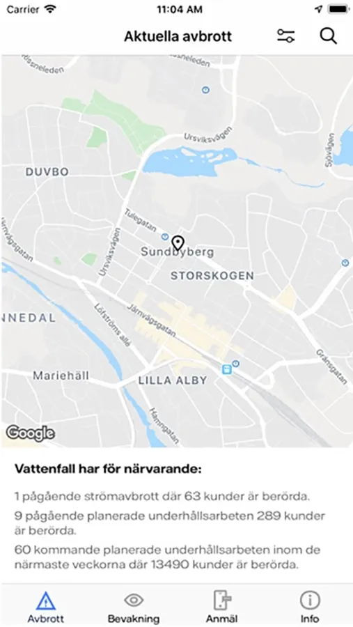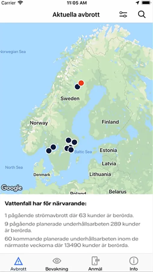 • Se aktuella strömavbrott