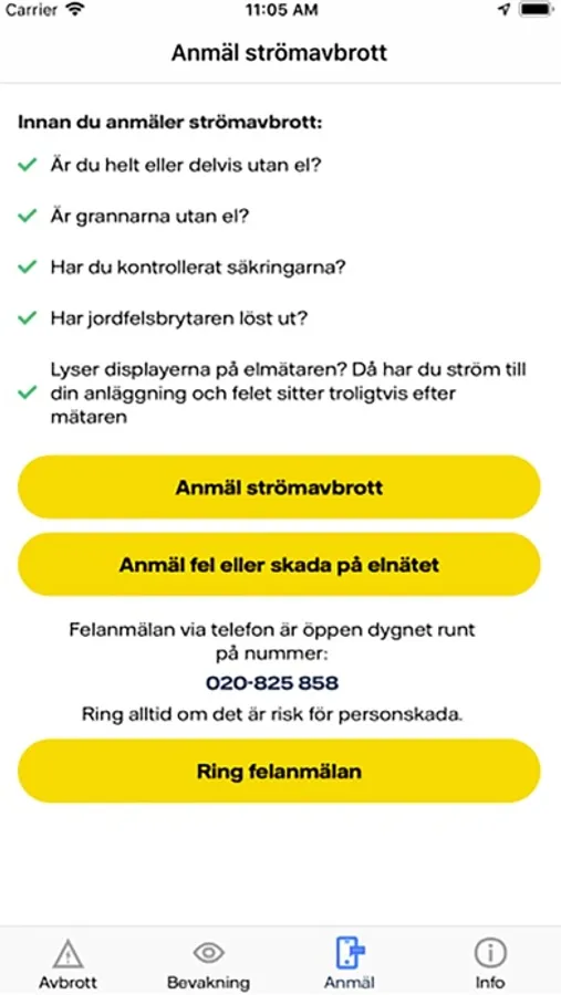 • Anmäla ett nytt strömavbrott
