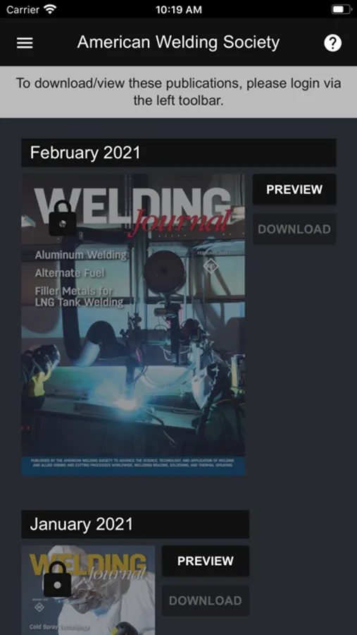 The WELDING JOURNAL app is free to download but you must be an AWS member in order to access the content (member ID and password required).