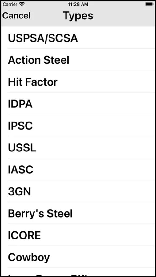 * default setups for the most common match types (USPSA, IDPA, IPSC,