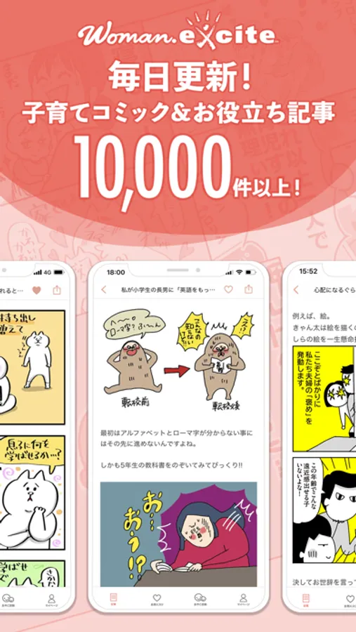 ウーマンエキサイトアプリは、「愛あるセレクトをしたい女性のみかた」をコンセプトに、自分自身のことも家族との時間も、愛情をベースに等身大のままで楽しみたい女性(ママ)向けアプリです。子育て・ビューティ・くらし・恋愛(夫婦関係)についての情報や今日の献立、家族のご飯などのレシピ情報、暮らしに彩りを与えるおしゃれなアイテム情報、エンタメ系ニュースなど、女性(ママ)に役立つ情報をお届けします。