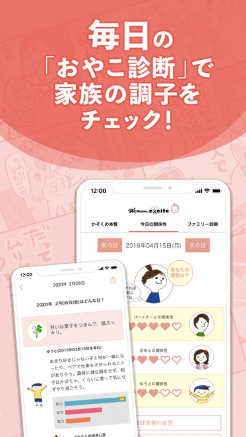おやこ診断とは「あなた」と「子ども」の生年月日を登録して親子関係を診断できるコンテンツです。