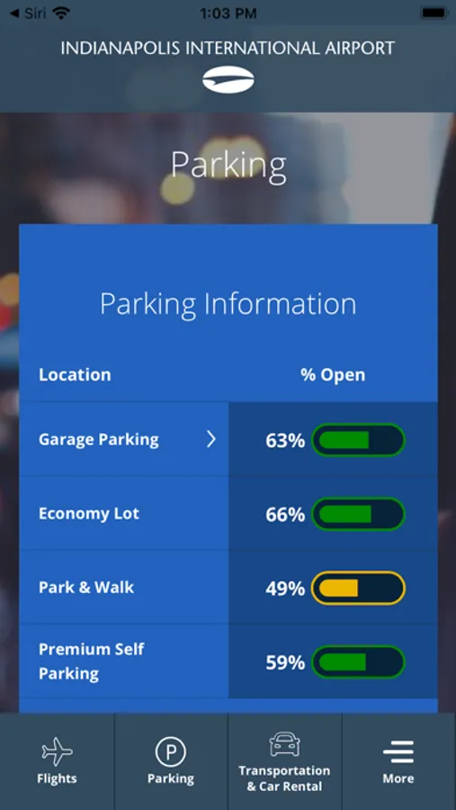 Indianapolis International Airport's Official App features real-time flight arrival and departure information. The App also provides passengers information about parking, airlines, ground transportation and the dining options at the Indianapolis International Airport.