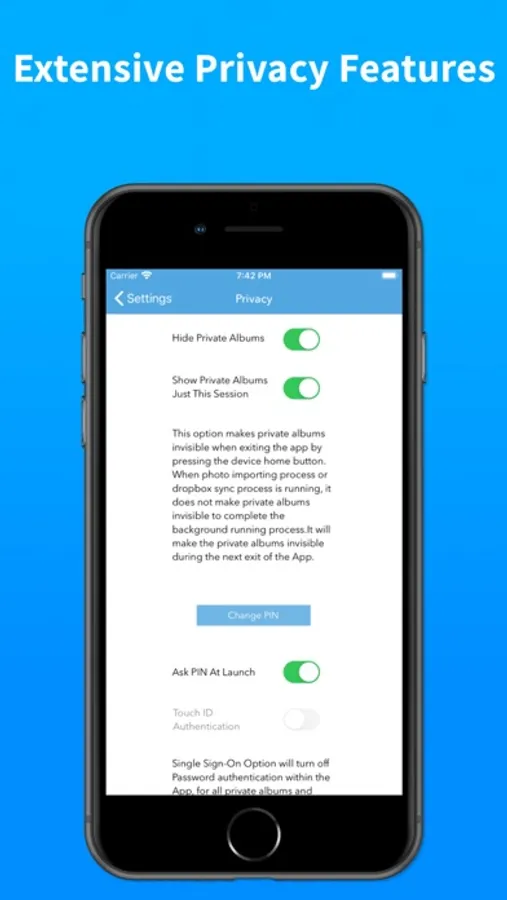 + Turn invisible mode off just for the session to access private albums, private albums will disappear when closing the App with this option.