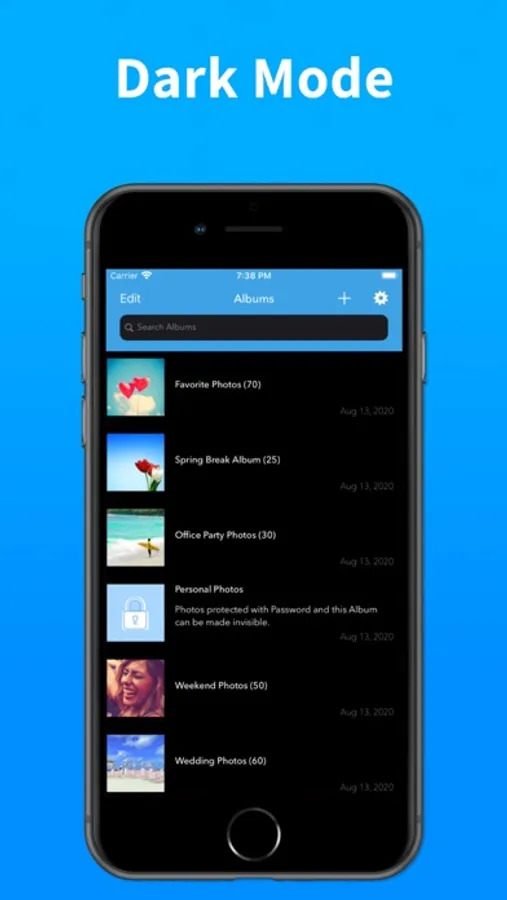 + Three layers of privacy with passcode, password and invisible mode for private albums.