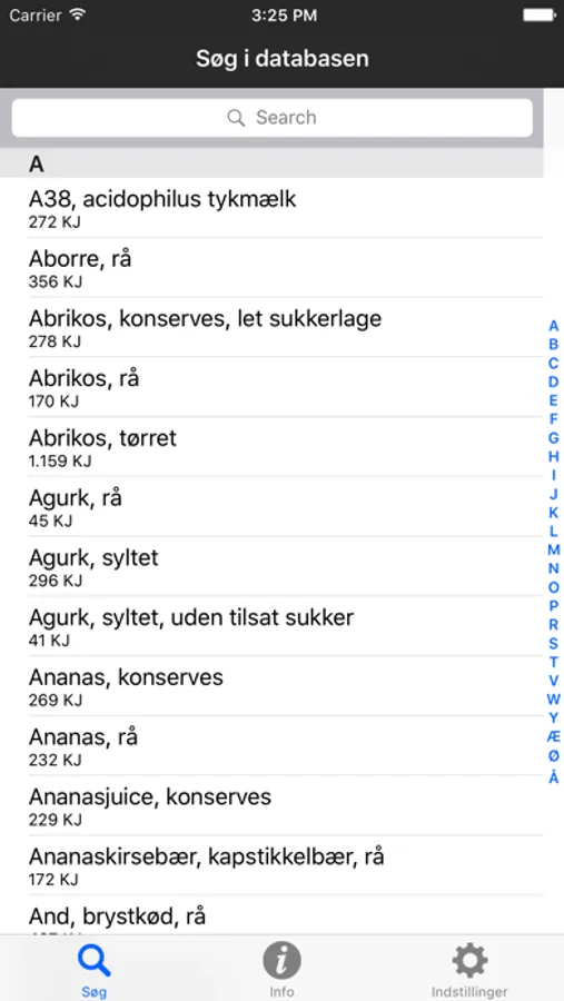 Du vælger selv om energiindhold skal vises i KJ eller Kcal.