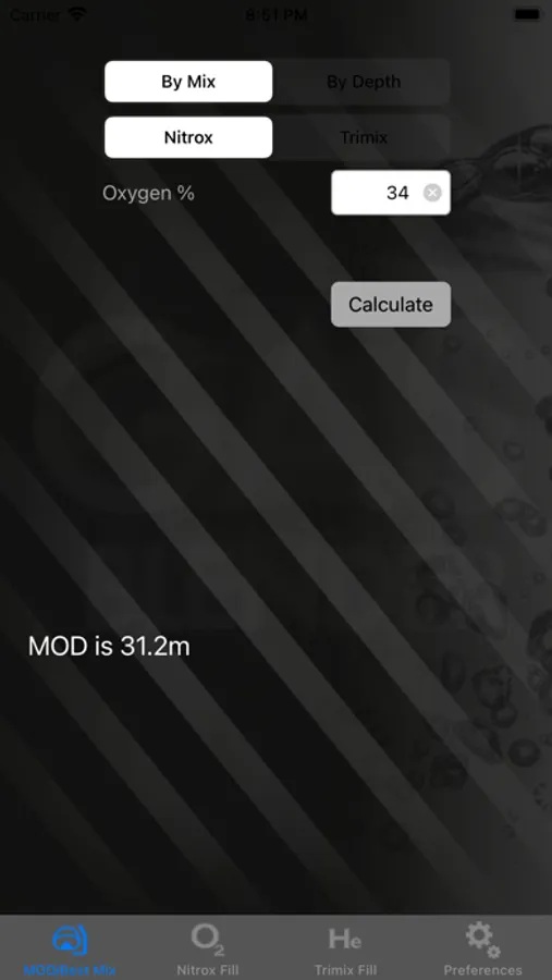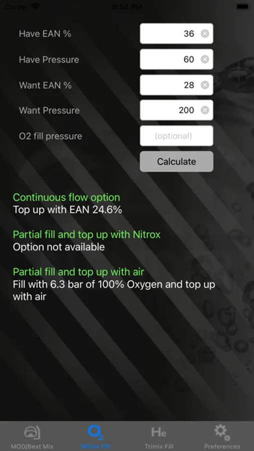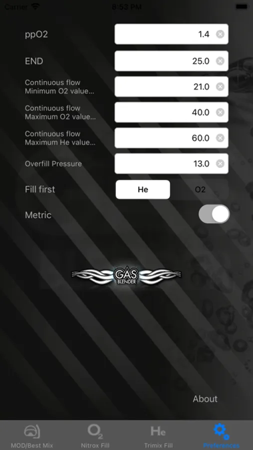 GasBlender is helping you calculate which gasses you should dive with, few input fields and easy to read output for at better experience.