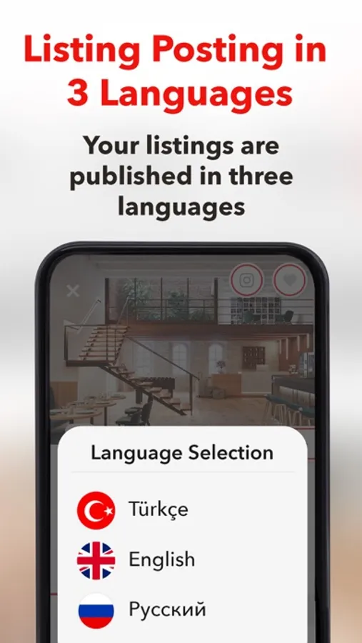 With our enhanced artificial intelligence algorithms, your Turkish listings on Hepsiemlak can be published in English and Russian, enabling your portfolio to reach global clients. Whether you are an individual property owner or a professional real estate consultant, Hepsiemlak mobile application is the key to reaching real estate customers.