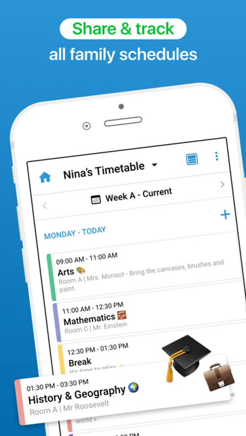 • Manage your different timetables