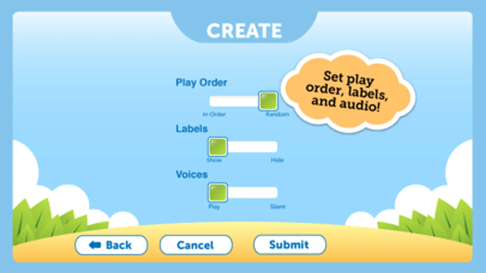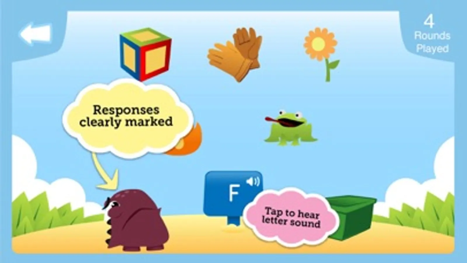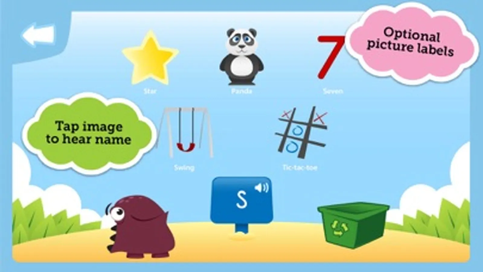 With the VOICING feature activated, a quick tap on an image will play the name of that image. A tap on the letter signpost will name its letter or consonant digraph and the sound it makes.