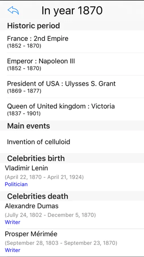- The corresponding historical periods.