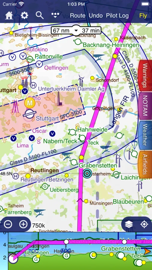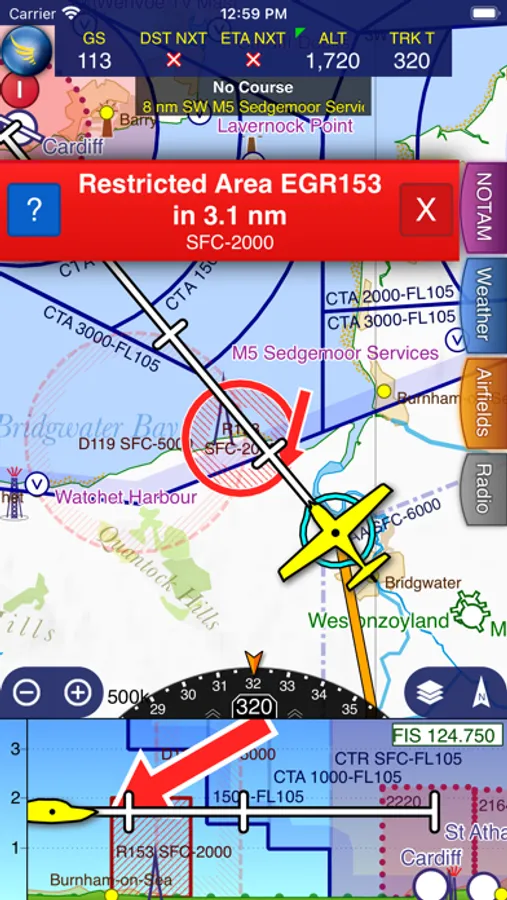 - Warnings for airspace and other potential hazards to your flight, updated in real time