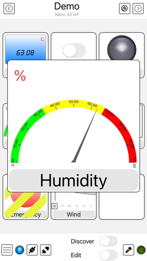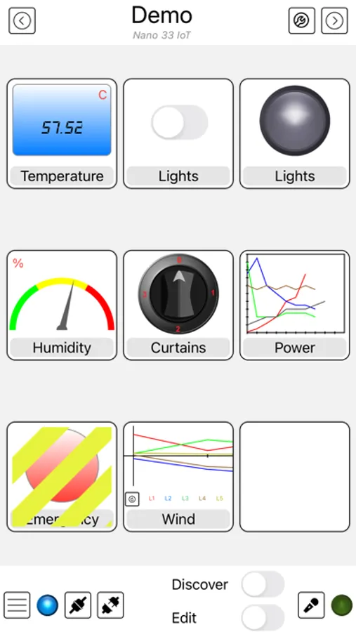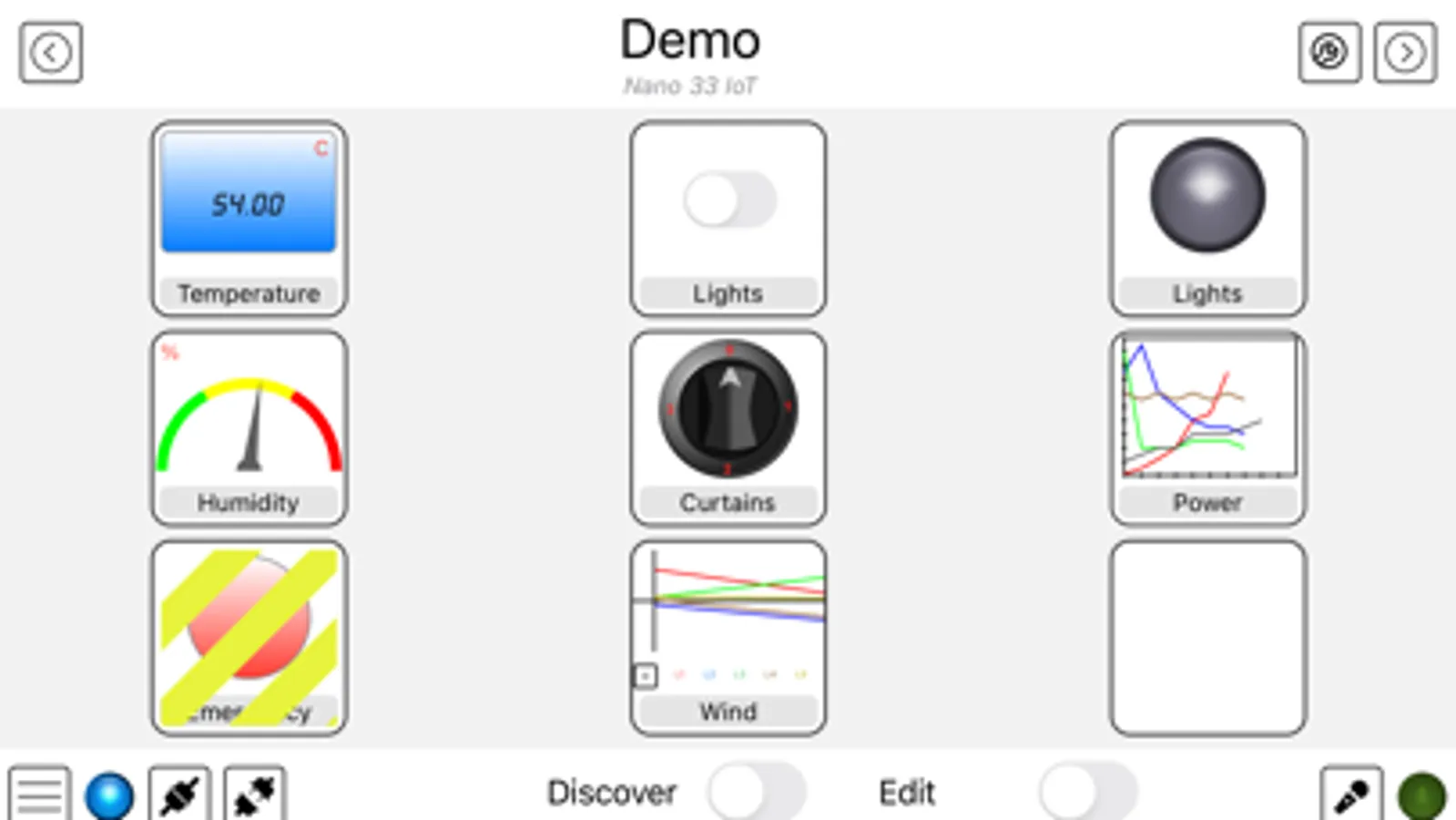 The app shows a grid and tapping on it you can insert specialized widgets to send and receive information from Arduino. For a better visualization or control, each widget can be zoomed by the means of a double tap on it;
