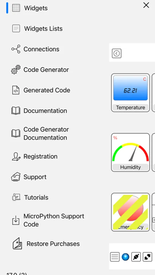 - Code Generator: allows to generate the communication infrastructure between the Arduino board and iOS device and the code for each chosen widget in order to simplify the programming effort