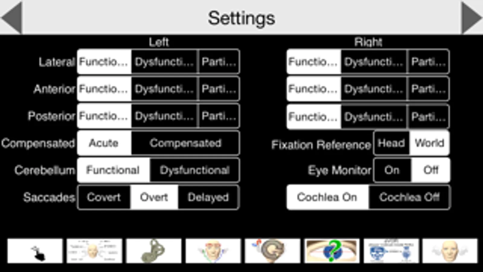 The application includes a Quiz Mode which presents the symptoms of various types of VOR dysfunction for the student to diagnose.