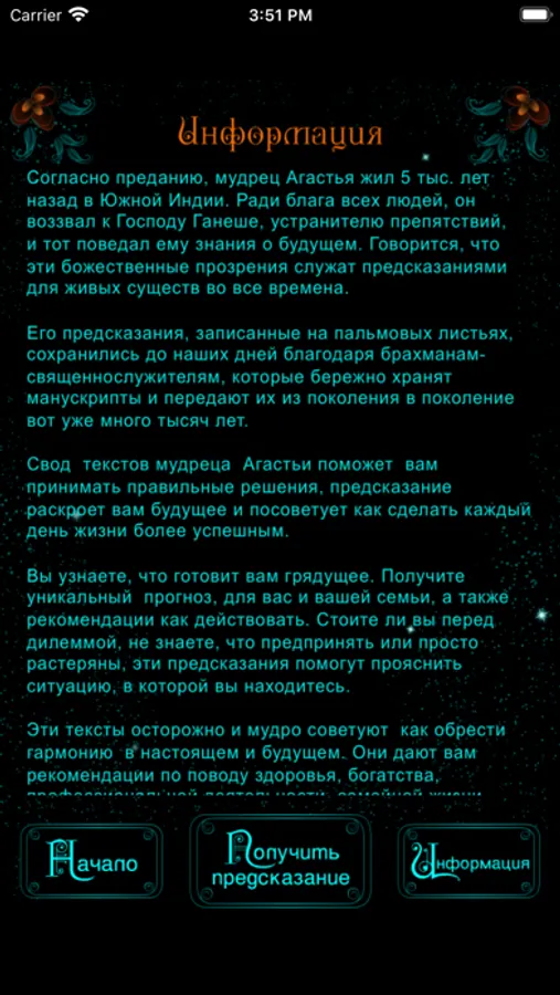 Предсказания мудреца Агастьи помогут принять важные решения и обрести гармонию в настоящем и будущем. Они дают ценные советы в вопросах здоровья, богатства, семейной жизни, профессиональной деятельности, образования и другого.