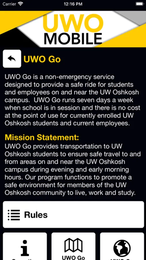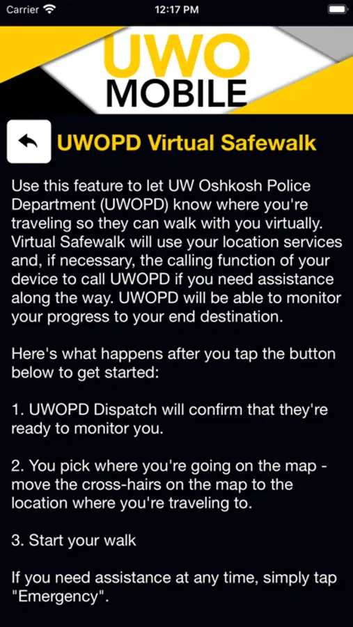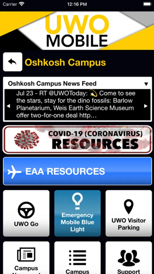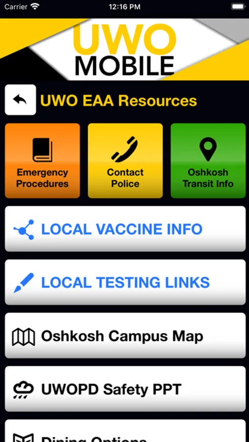 - Campus safety resources: access all important UW Oshkosh safety resources in one convenient app.