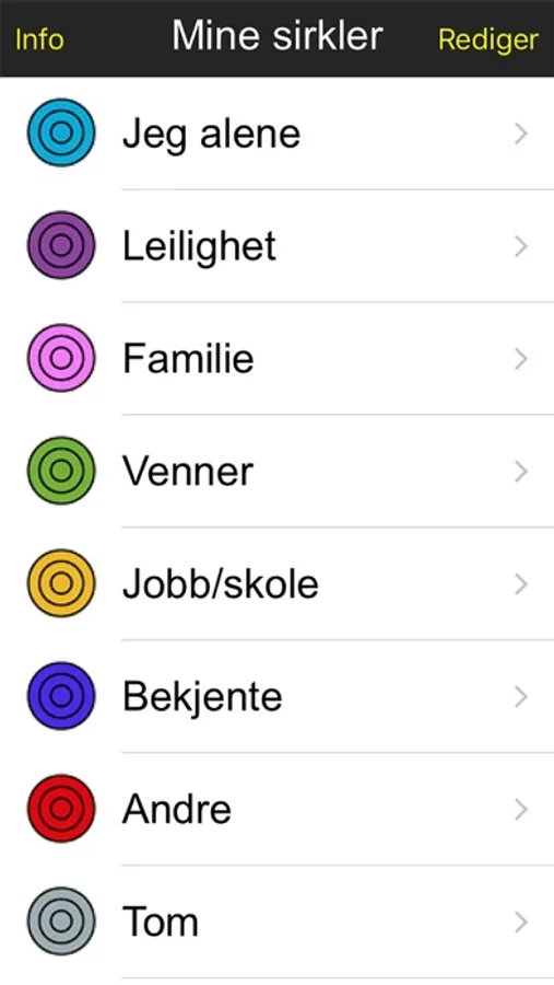 Innholdet i " mine sirkler" må tilpasses den enkelte bruker og er lett å skreddersy. Når applikasjonen er lastet ned vil en få tilgang til en webside der metodikken er beskrevet og der en får eksempler på hva som kan skrives i de enkelte nivå i hver sirkel. Praktisk beskrivelse om hvordan man fyller innhold i de ulike sirklene vil også ligge på websiden.