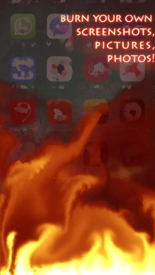 Incredible realistic burning screen simulation including "augmented reality" camera mode. Interactive via multitouch gestures, accelerometers and gyroscopic sensors and video stream content. Variable backgrounds, adjustable settings and stylish burning clock.