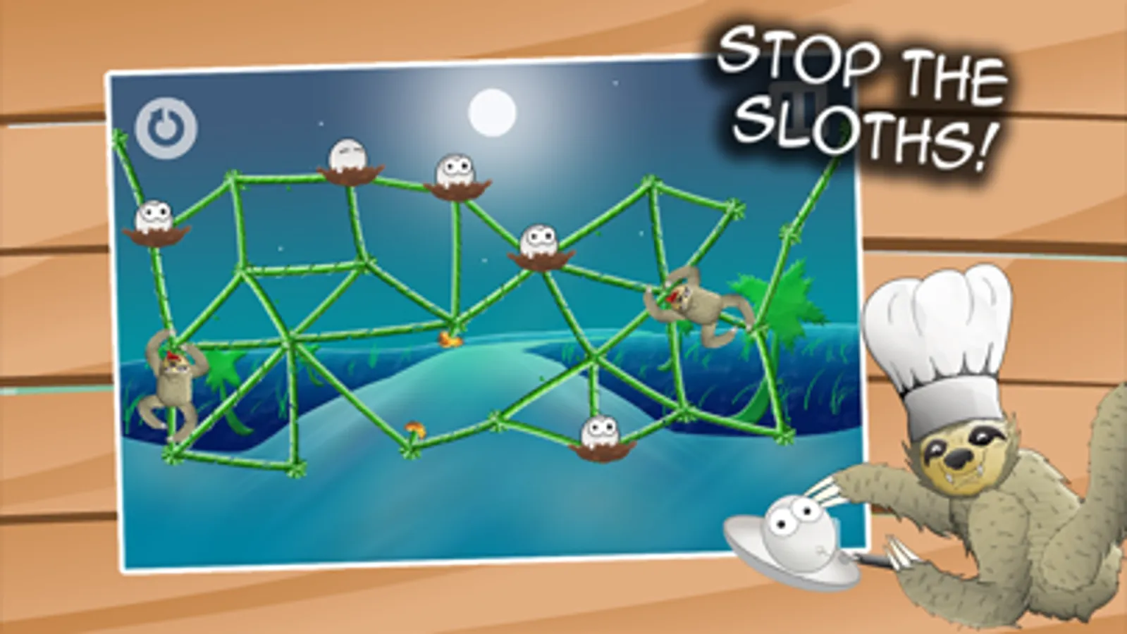 Sloths are lazy and always climb the shortest path to reach a meal. Grab a torch and burn the vines connecting them to the eggs!