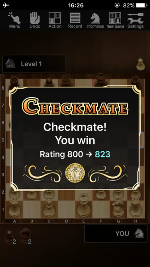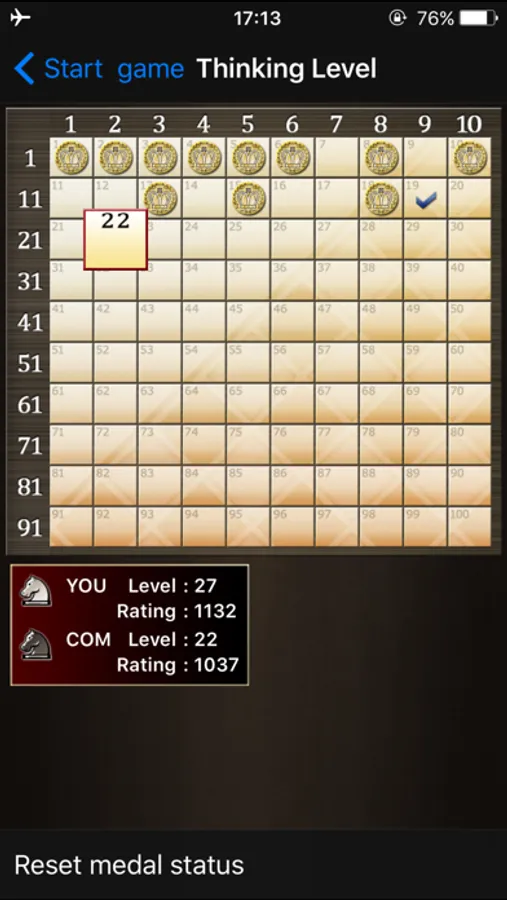 - Computer gives your level evaluation by ELO rating in rating mode,