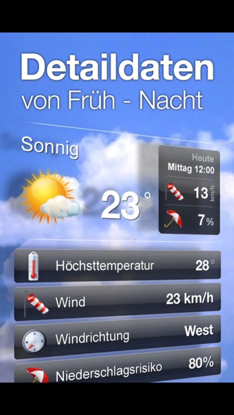 + Früh-, Mittag-, Abend- & Nachtprognose