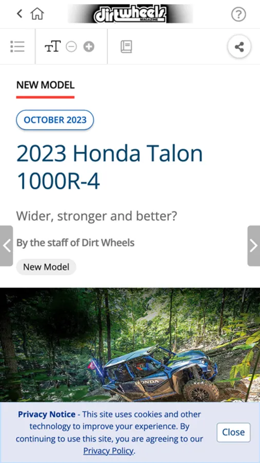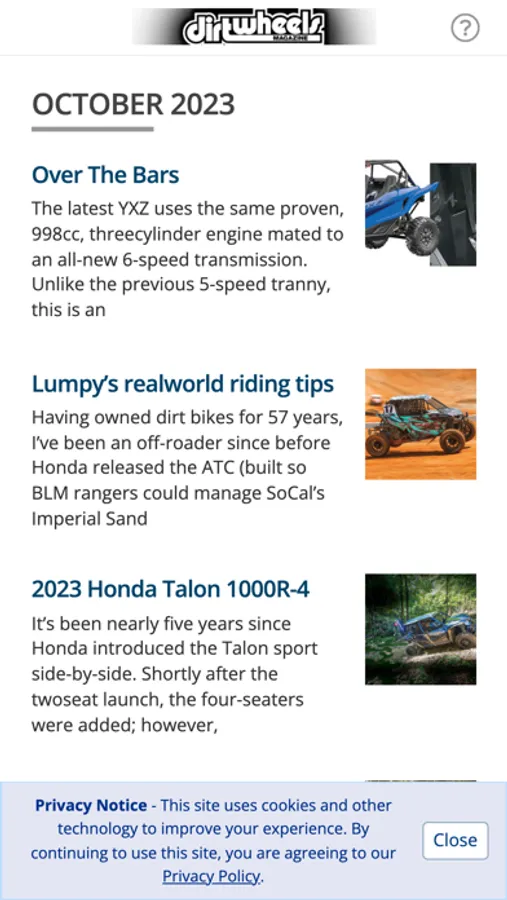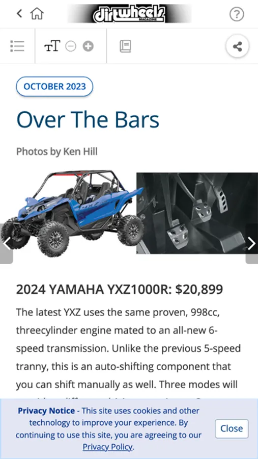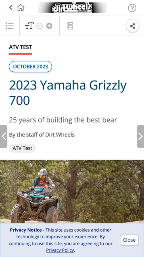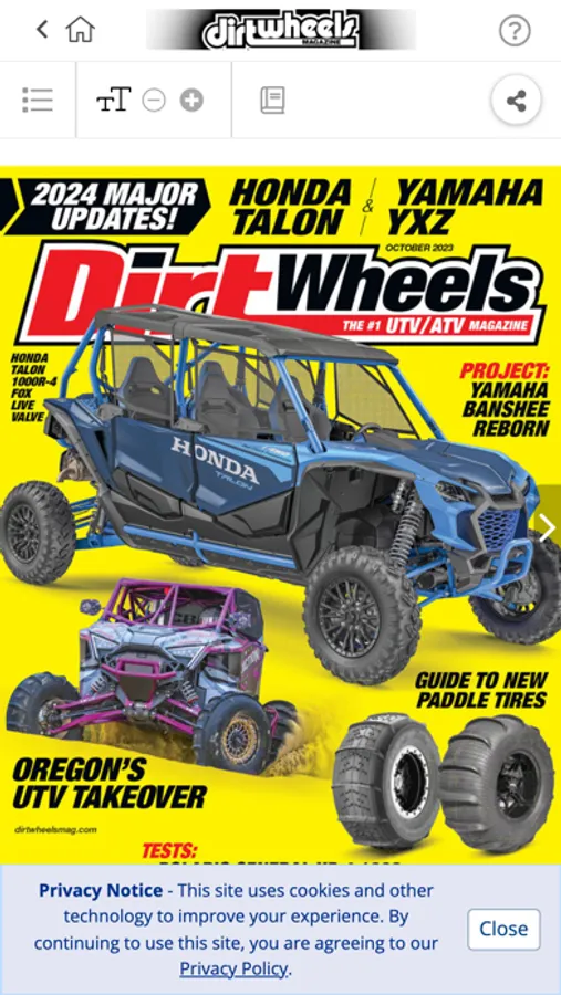 The Number-One ATV magazine for over 35 years, DIRT WHEELS brings you everything in the off-road ATV and UTV world. Each monthly issue is packed with full-on riding and racing tests and reviews of the latest ATVs and UTVs. We test every hop-up part and accessory under the sun to make your rig faster and perform better. Our pros give you riding tips on how to handle different types of terrain, from sand to woods to mud to desert, plus we'll tell you where the greatest riding areas on the planet are located, along with coverage of the best ATV/UTV festivals/jamborees. And you'll get how-tos on everything from tire changes to complete engine rebuilds. This App lets you buy current and past issues (which are available within the App) and download it to your device. Issues purchased in the App have enhanced features, including special video coverage, plus links to all manufacturers' websites. 12 issues (one year) for $8.99. Download single copies for $2.99 each. The subscription will include the current issue if you do not already own it.