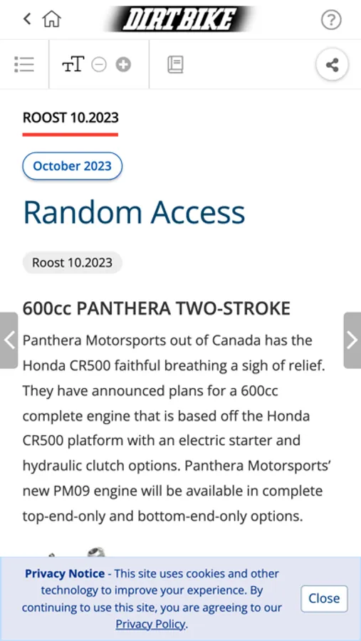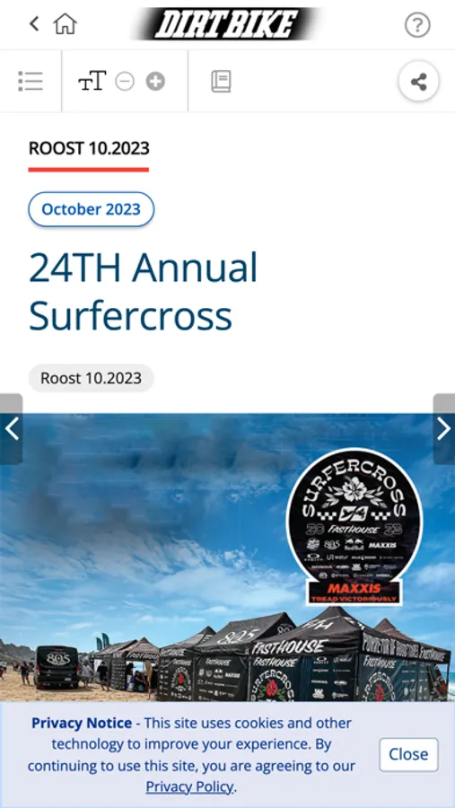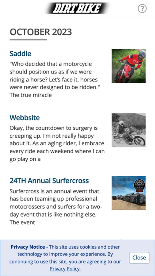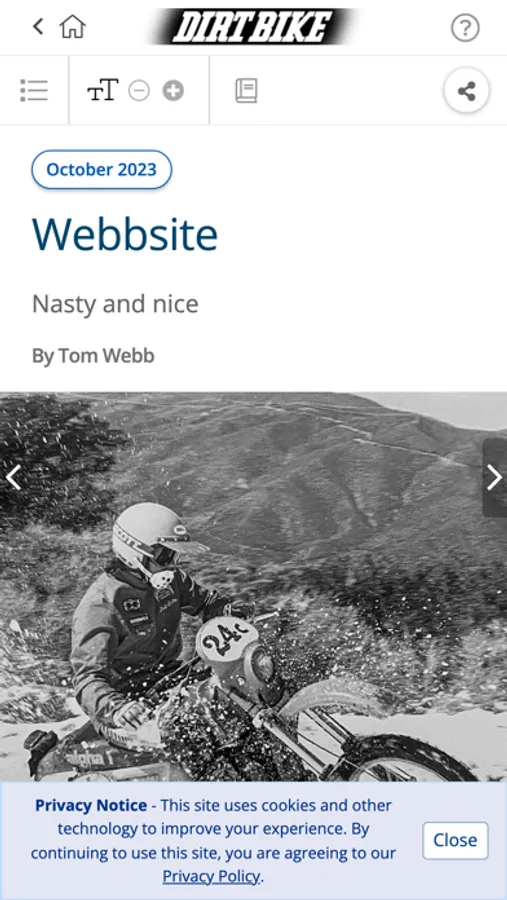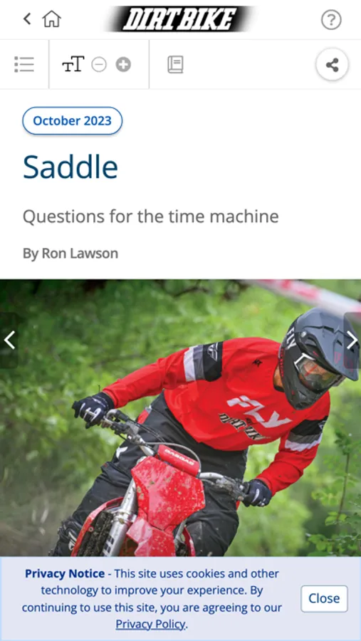 DIRT BIKE Magazine covers the entire world of off-road motorcycling. It’s the NUMBER-ONE title in the field (and has been for over 40 years!). We ride and test ALL of the latest bikes, as well as all of the hop-up parts and accessories made to upgrade your bike and help you go FASTER. We tell you what the hot set-ups are for every bike available. We cover EVERYTHING in the sport: Moto, desert, woods, dual-sport, and adventure bikes too! We give you how-to's on setting up and repairing your bike, and riding tips from the top riders. All this, plus complete race coverage, from MX, SX and EnduroCross to the GNCC, WORCS, and H&H series. See what's happening in the off-road world. This App gives you the mobile flexibility to read and purchase issues and download to your device. Issues purchased in the App have enhanced features, including special video coverage on races, bikes, products, plus links to all manufacturers' websites. 12 issue subscription (one year) for $8.99. Download the current issue or back issues for $2.99 each.