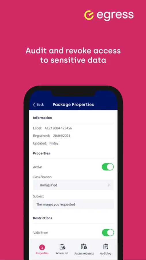 This app is operated by Egress Software Technologies Limited, registered in England and Wales (co number: 06393598, registered office: 12th Floor, The White Collar Factory, 1 Old Street Yard, London, EC1Y 8AF, VAT number: is 921 4606 46) for and on behalf of the Egress Software Technologies Group of companies.