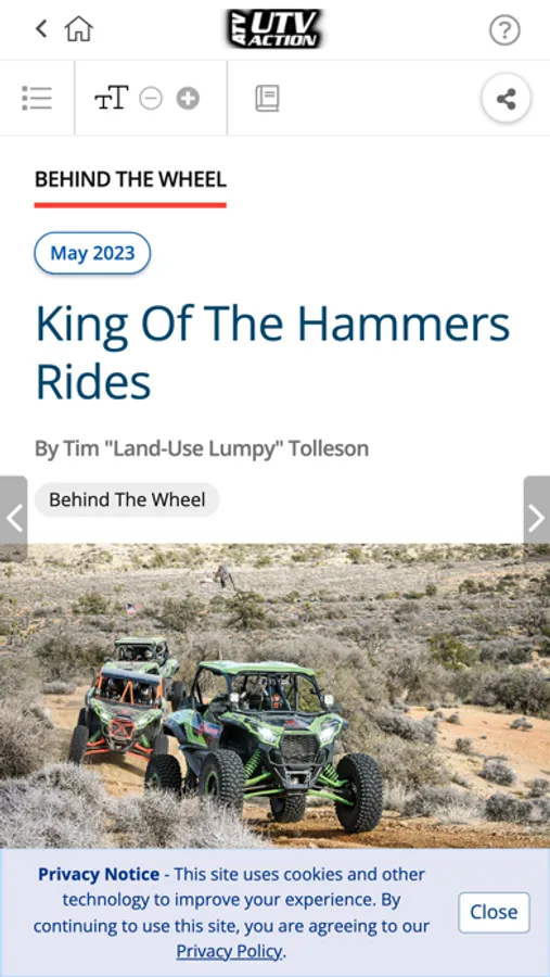 On the cutting edge of the ATV and UTV world, ATV 4 WHEEL ACTION Magazine covers EVERYTHING in the sport. We ride and race nearly every new ATV and UTV on the planet, and give you the hot set-ups for your ride. We test every hop-up part and accessory under the sun to make your rig faster, and keep you ahead of the competition. In the sand, woods, mud, and desert, we'll tell you what works best. You'll get how-tos on everything from tire changes to complete engine rebuilds. PLUS, there's a complete section on UTV's-only stuff in every issue. No other magazine delivers the ENTIRE ATV world like ATV 4 WHEEL ACTION Magazine! Read and purchase current and past issues (available within the App) and download it to your account. Issues purchased in the App have enhanced features, including special video coverage on races, bikes, products, plus links to all manufacturers' websites. 12 issues (one year) for $8.99. Download the current issue, or back issues for $2.99 each. The subscription will include the current issue if you do not already own it.