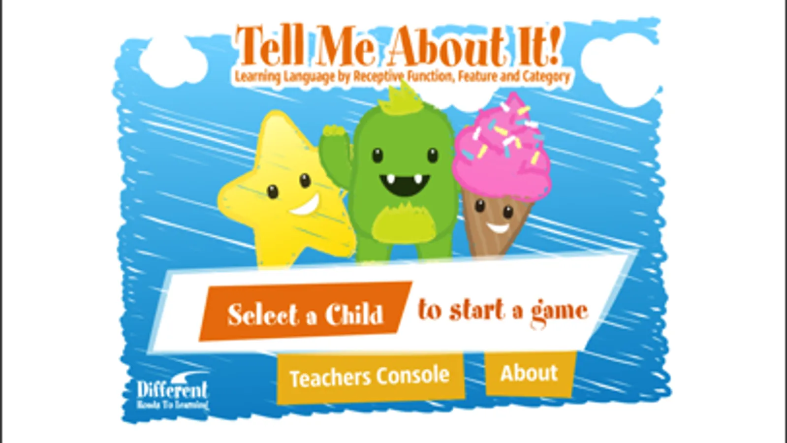 Tell Me About It! Learning Language by Receptive Feature, Function and Category teaches the label, category, function, and features of more than 235 language targets over 6 levels of incremental difficulty. The presentation of each target conforms to an Applied Behavior Analysis program with reinforcement provided by a token economy system. This is a self-contained DT-program that error corrects & provides direct reinforcement to the student while collecting data for up to 10 users. A Student Report Card displays data for each student with an option to email results.