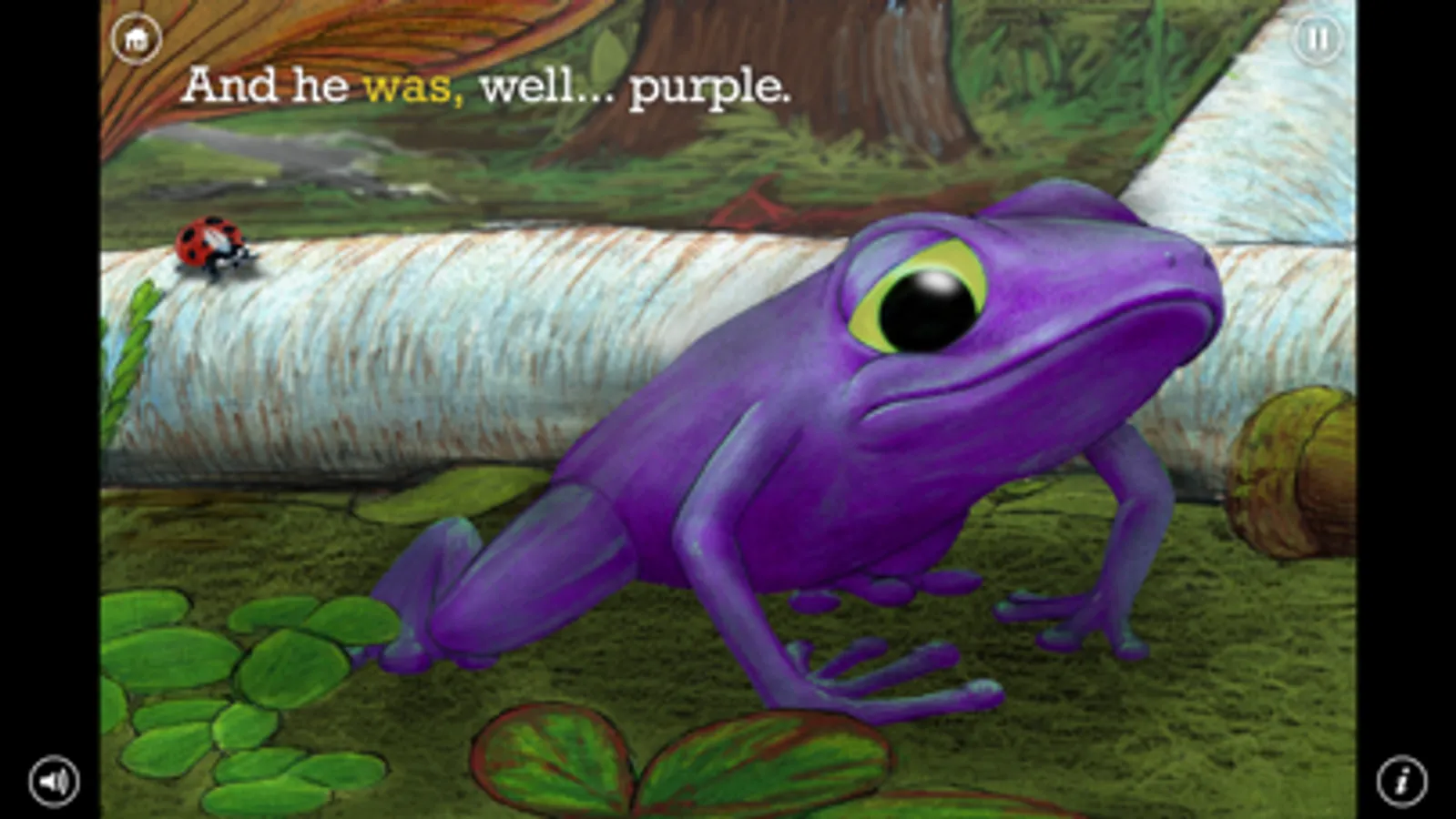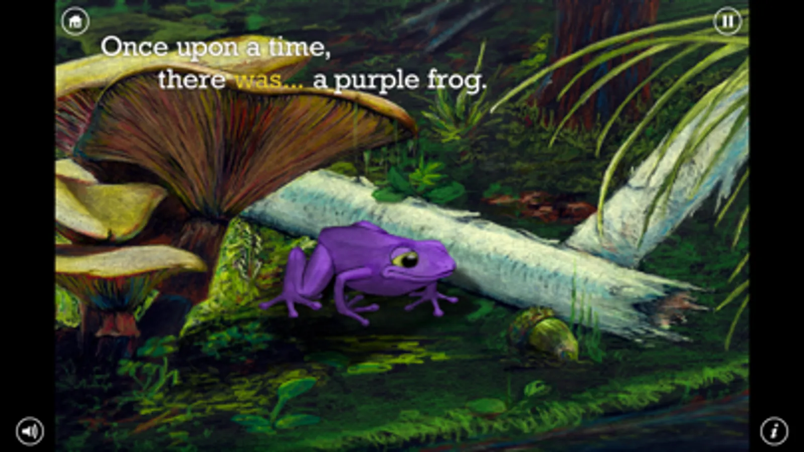 PURPLE FROG is an interactive children's book with original artwork and voice narration that will draw kids into a magical world while teaching them to read, speak and spell properly.