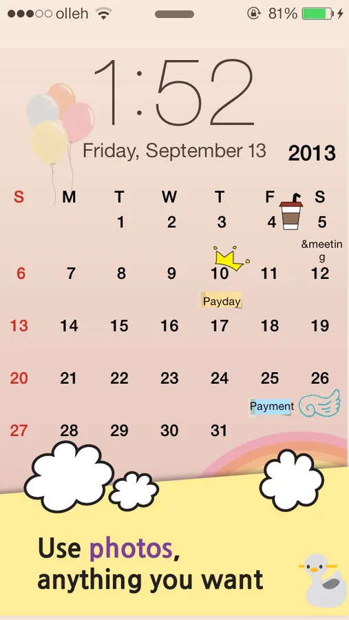 Over 10,000 background images and your own photos becomes calendar. Use custom text as well as thousands of color photo filters. Use different stickers and fonts to create your own customized calendar.
