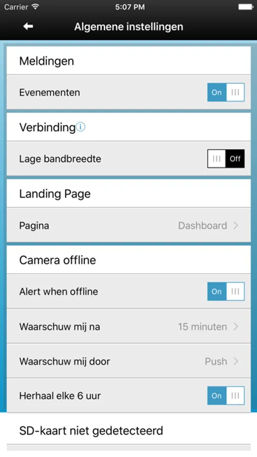 (supported features might differ per camera brand / model and for some features a subscription is needed, like online recording)
