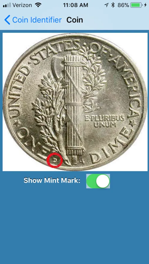 A graphics overlay may be turned on/off indicating the location of the mint mark.